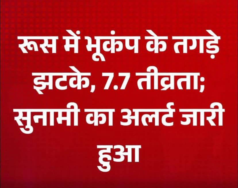 रूस के कामचटका क्षेत्र के पूर्वी तट के पास 7. 1 तीव्रता का भूकंप आया है. इसका केंद्र 10 किमी की गहराई पर था. भूंकप की वजह से 300 किमी के दायरे में आने वाले समुद्र तटों पर सुनामी की चेतावनी जारी की गई है. ये झटके कामचटका प्रायद्वीप में आए 8. 8 तीव्रता के शक्तिशाली भूकंप के एक महीने बाद आए हैं. कामचटका प्रायद्वीप एक ऐसा इलाका है, जहां अक्सर भूकंप आते रहते हैं. पिछले महीने आए भूकंप की वजह से रूस, अमेरिका, जापान, हवाई, चिली, कोस्टा रिका और अन्य देशों में भी सुनामी की चेतावनी जारी हुई थी