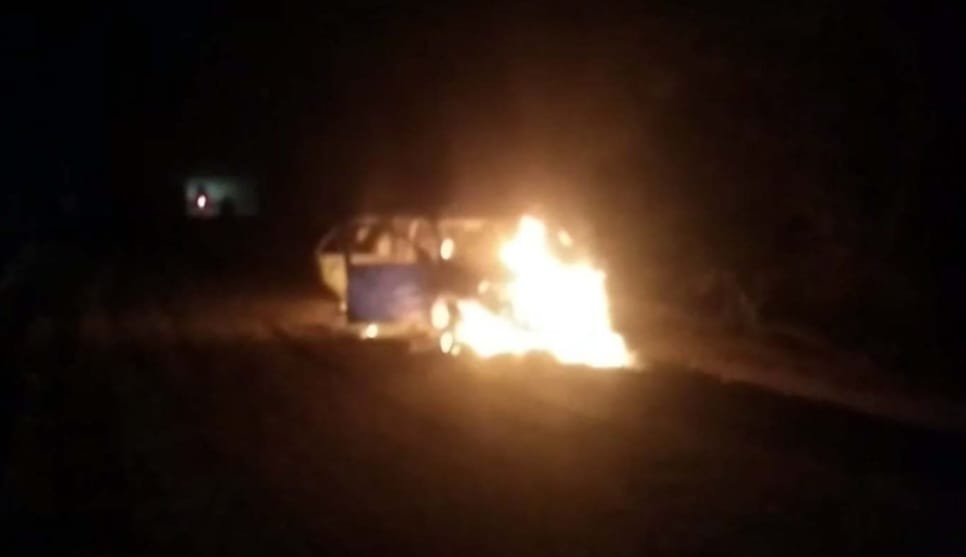 चलती गाड़ी में भड़की आग, सवार लोगों ने भागकर बचाई जान