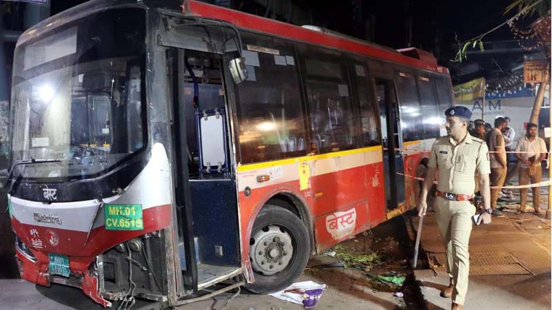 महाराष्ट्र की राजधानी मुंबई के उपनगरीय इलाके भांडुप रेलवे स्टेशन के बाहर एक रिवर्स कर रही बृहन्मुंबई विद्युत आपूर्ति और परिवहन (बीईएसटी) की बस ने राहगीरों को टक्कर मार दी, जिससे चार लोगों की मौत हो गई और नौ अन्य घायल हो गए। आधिकारिक सूत्रों ने मंगलवार को यह जानकारी दी। बीएमसी की प्रारंभिक खबरों के मुताबिक यह दुर्घटना 29 दिसंबर को 11 बजे रात के आस-पास उस समय घटित हुई, जब विक्रोली डिपो की वेट-लीज्ड इलेक्ट्रिक एसी बस रिवर्स करते समय नियंत्रण खो बैठी और यात्रियों की कतार में घुस गई।