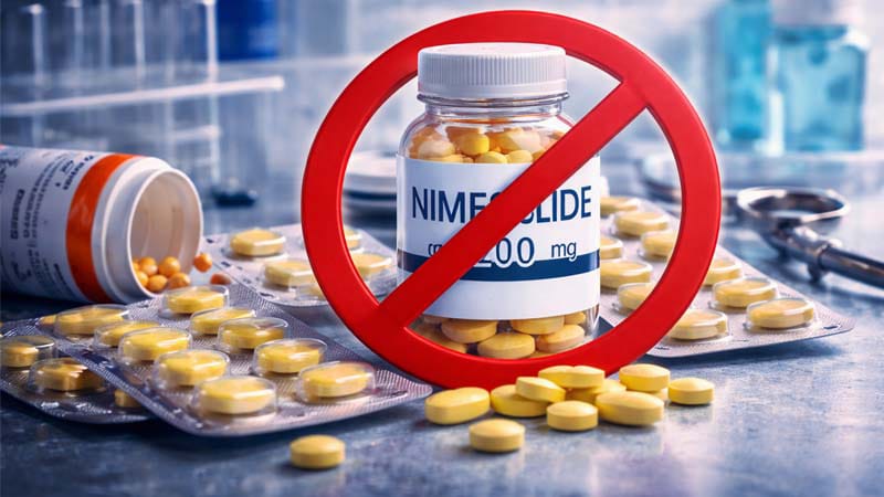 स्वास्थ्य मंत्रालय ने सुरक्षा चिंताओं का हवाला देते हुए सोमवार को ऐसी सभी ओरल दवाओं के निर्माण, बिक्री और वितरण पर तत्काल प्रभाव से पूरी तरह प्रतिबंध लगा दिया है, जिसमें निमेसुलाइड की मात्रा 100 मिलीग्राम से अधिक है। मंत्रालय ने एक वर्ष पहले ही मवेशियों के लिए भी इसे प्रतिबंधित कर दिया था। स्वास्थ्य अधिकारियों ने बताया कि भारत में इस घटक (साल्ट) का प्रयोग सामान्य रूप से दर्द और बुखार में होता है। इसके उच्च खुराक के सेवन से स्वास्थ्य संबंधी समस्याएं पैदा हो सकती है।